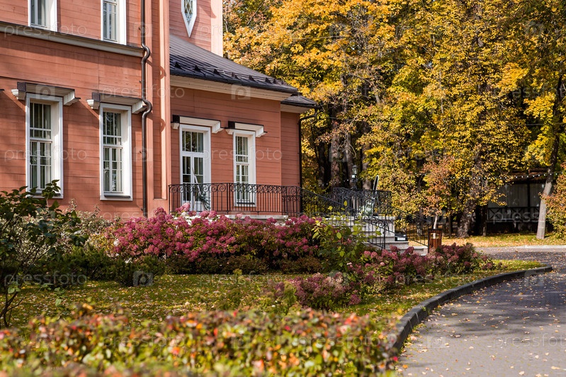Улицы Видное под Москвой Красивое осеннее поместье с желтыми деревьями в солнечный осенний день городской пейзаж