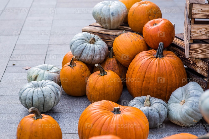 Осенний тыквенный фон. Богатый урожай тыквы снаружи. Концепция Хэллоуина или Дня благодарения