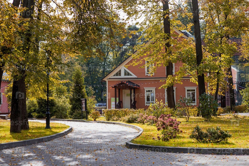 Улицы Видное под Москвой Красивое осеннее поместье с желтыми деревьями в солнечный осенний день городской пейзаж