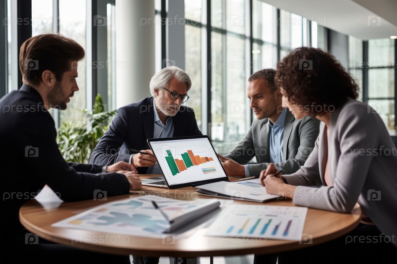 Тип команды, просматривающей диаграммы и графики во время деловой встречи, принятия решений на основе данных и сотрудничества