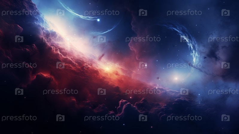 Иллюстрация красочного космического фона с туманностями, яркими звездами. обои