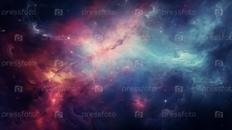 Иллюстрация красочного космического фона с туманностями, яркими звездами. обои