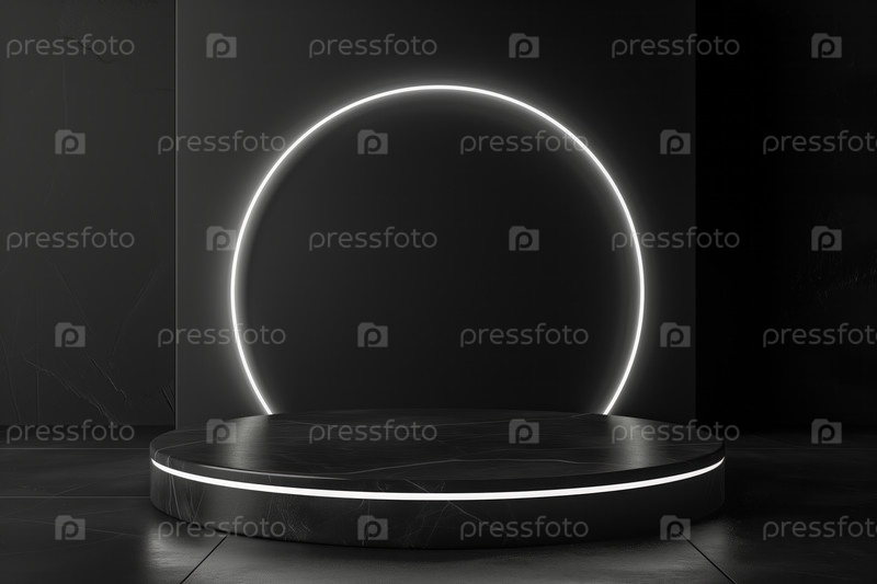 Круглый черный подиум с белым неоновым светом на темном фоне для демонстрации продукта, презентации