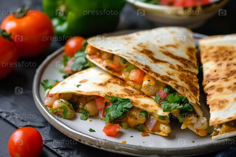 Идея квесадиллы, наполненной свежими овощами и подаваемой на деревянном столе