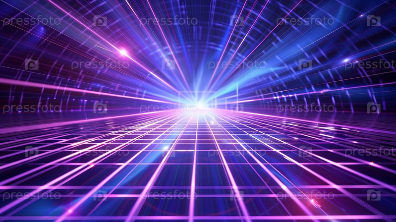 Яркий фон имеет светящиеся сетевые линии в фиолетовом и синем цветах, излучающие свет к центру, создавая футуристическую атмосферу