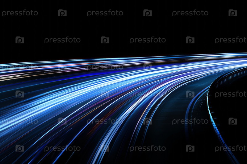 Длинная фотография голубого света на изогнутой дороге ночью