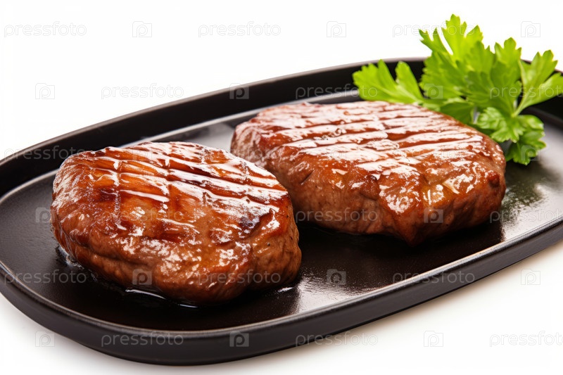 Свежий вкусный стейк из Солсбери на белом фоне