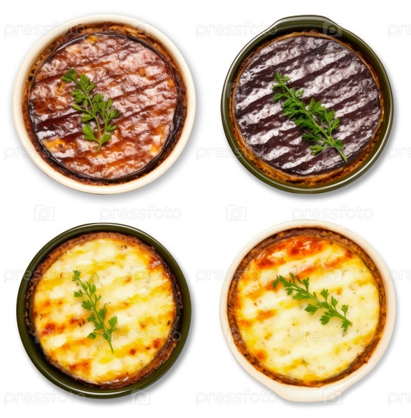Вид сверху на комплект свежих вкусных блюд Муссаки, изолированный на прозрачном фоне