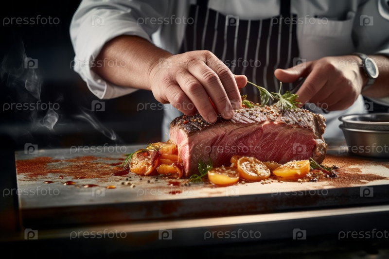 Взгляните внимательнее на точность того, как шеф-повар умело вырезал блюдо из жареного мяса, продемонстрировав опыт и преданность кулинарному совершенству
