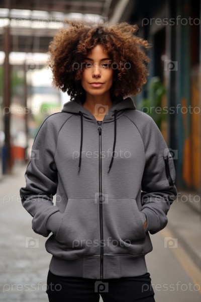 Стильный серый свитер, который носит красивая модная модель в городской обстановке