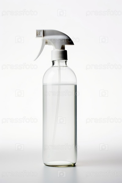 Прозрачная пластиковая бутылка с пустым пространством для оформления, на белом фоне студии
