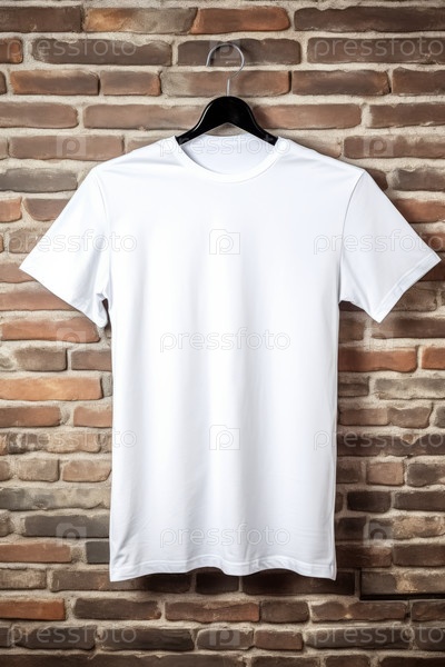 Стильные белые футболки на фоне кирпичной стены. пустое место для насмешек
