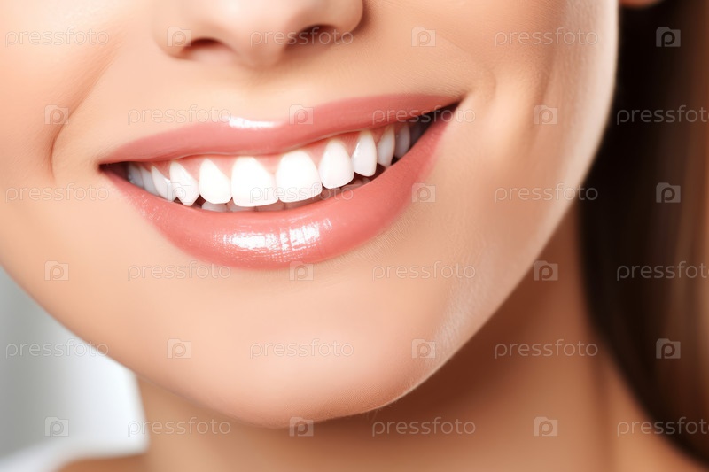 Экстремальный крупный план красивой женщины с улыбающимися губами и белыми зубами
