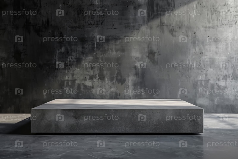 Прямоугольный каменный подиум на тёмно-сером грубом фоне для выставки продуктов, презентации