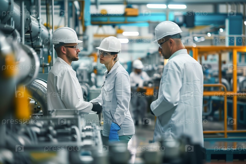 Рабочие, работающие в современной фабричной среде