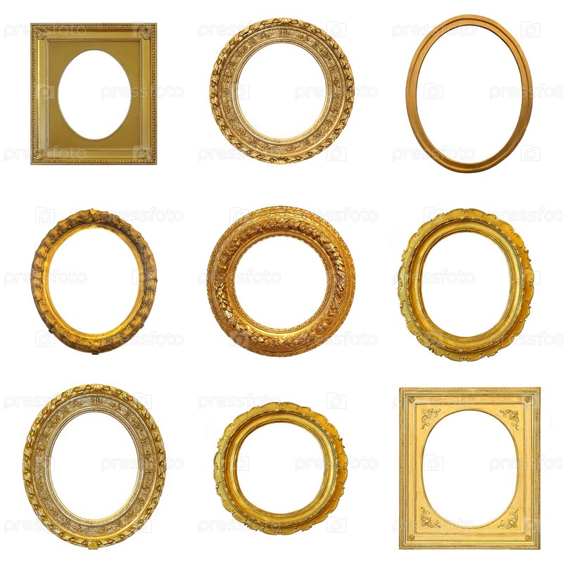 Набор золотых рамок для картин, зеркал или фотографий, изолированных на белом фоне