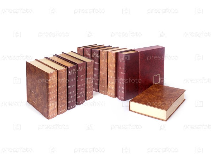 Куча книг в коричневых обложках, изолированных на белом фоне