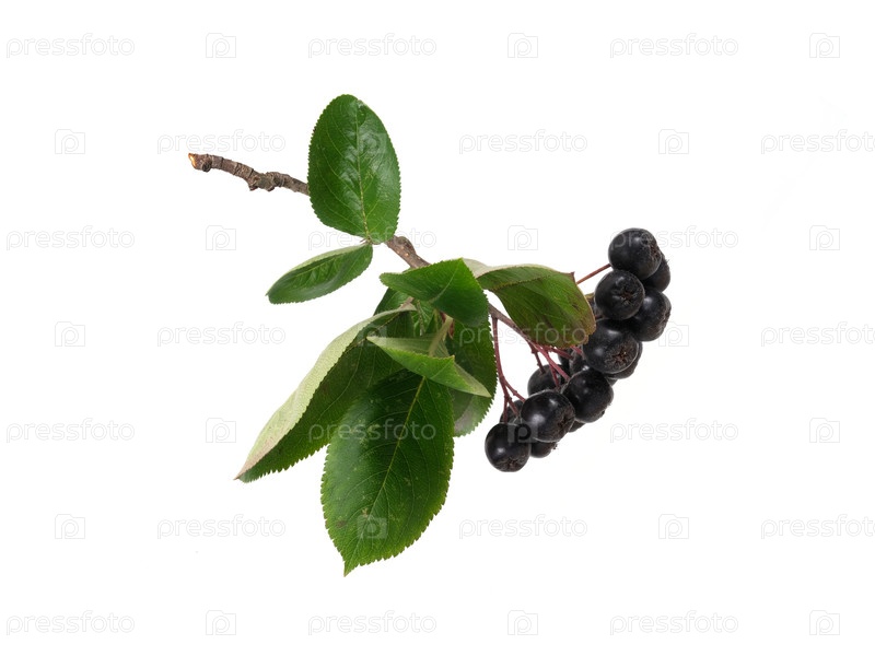 Висящая ветвь аронии с темно-синими ягодами, выделенными на белом фоне, ошейник готов