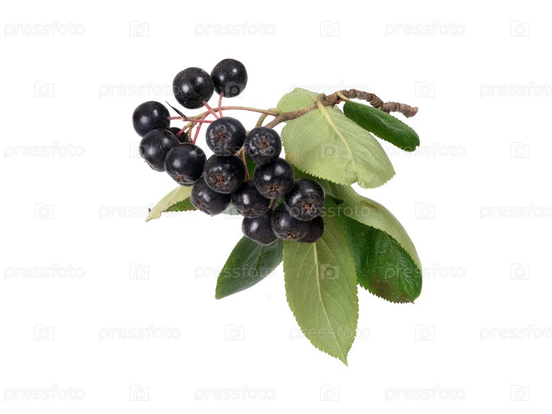 Висящая ветвь аронии с темно-синими ягодами, выделенными на белом фоне, ошейник готов