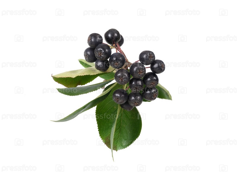 Висящая ветвь аронии с темно-синими ягодами, выделенными на белом фоне, ошейник готов