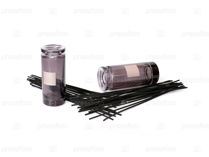 Стеклянный диффузор с ароматом, выделенным на белом фоне
