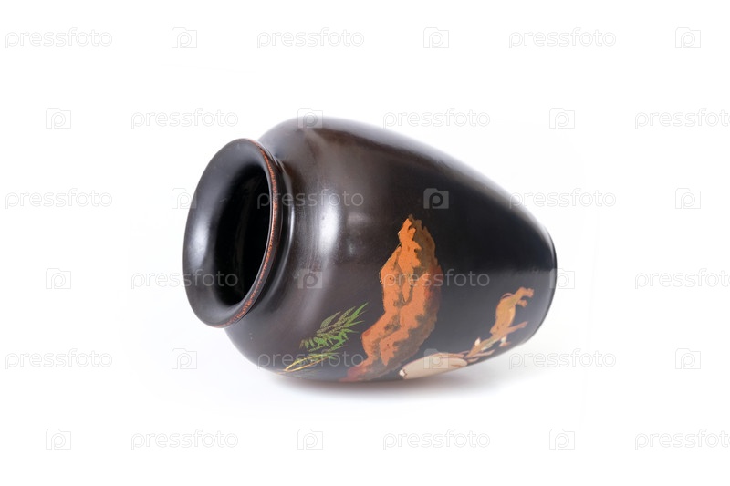 Вьетнамская черная ручная лаковая ваза изолирована на белом фоне