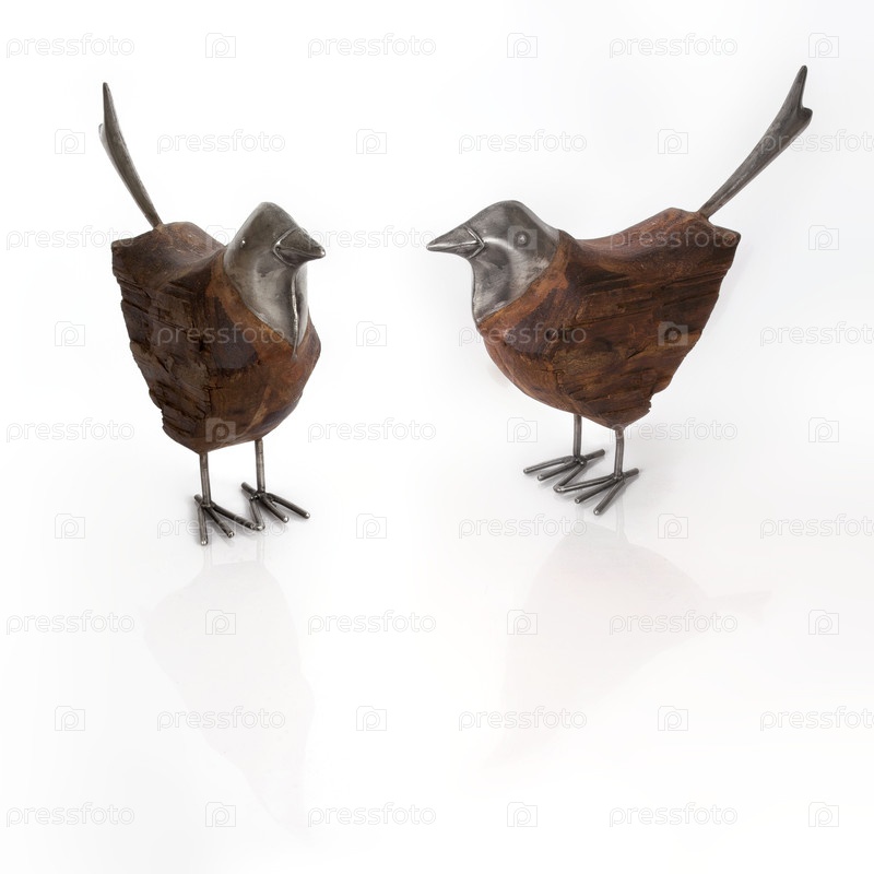 Декоративные деревянные птицы изолированы на белом фоне