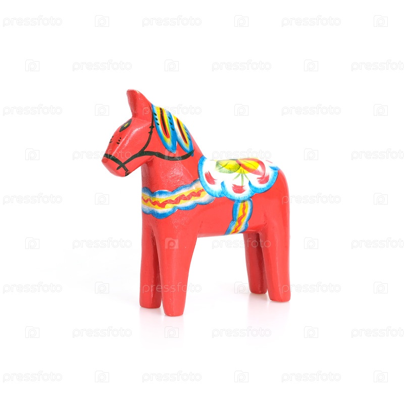 Красная лошадь Даларна: Подарочная статуэтка из Швеции выделена на белом фоне
