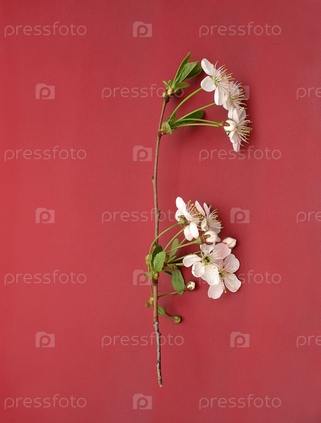 Цветы вишневых деревьев (сакуры) изолированы на красном фоне