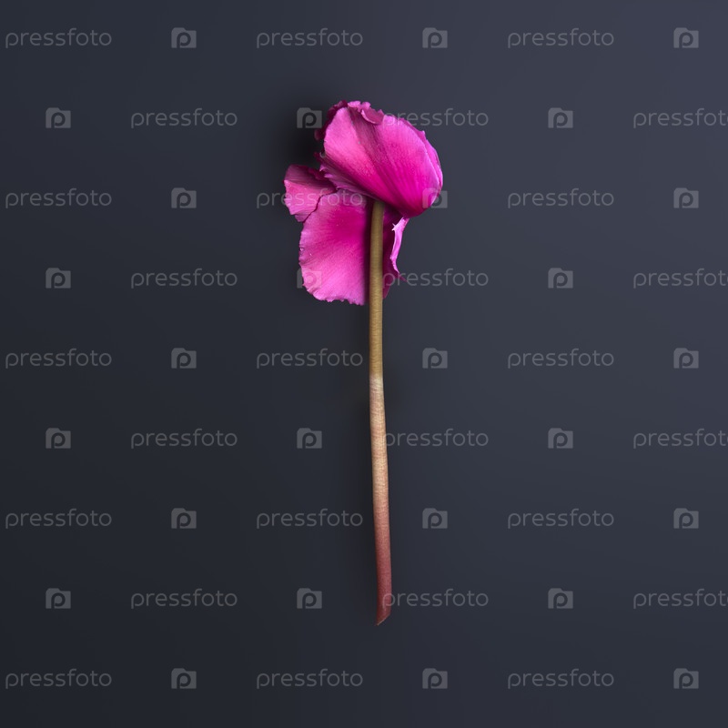 Одинокий розовый цветок цикламена изолирован на черном фоне