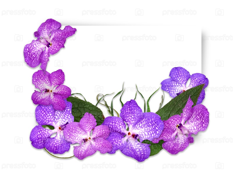 Поздравительная открытка с цветами орхидей и зелеными листьями