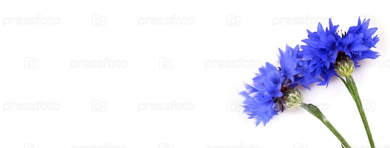Полевые голубые цветы выделены на белом фоне