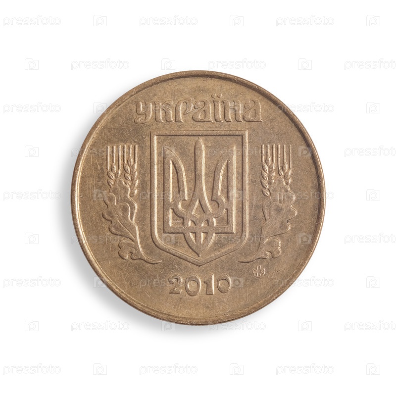 Украинская монета 25 копеек выделена на белом фоне. Надпись означает 'Украина'