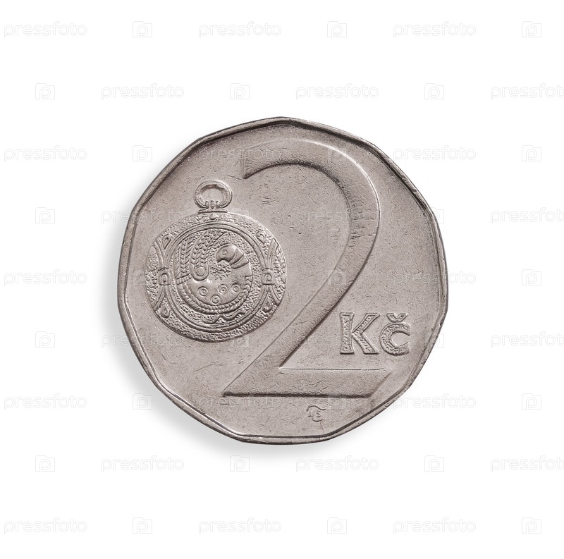 Чехская монета 2 корон.Чешская надпись '2 короны' на английском языке.Элемент дизайна с обрезанной дорожкой