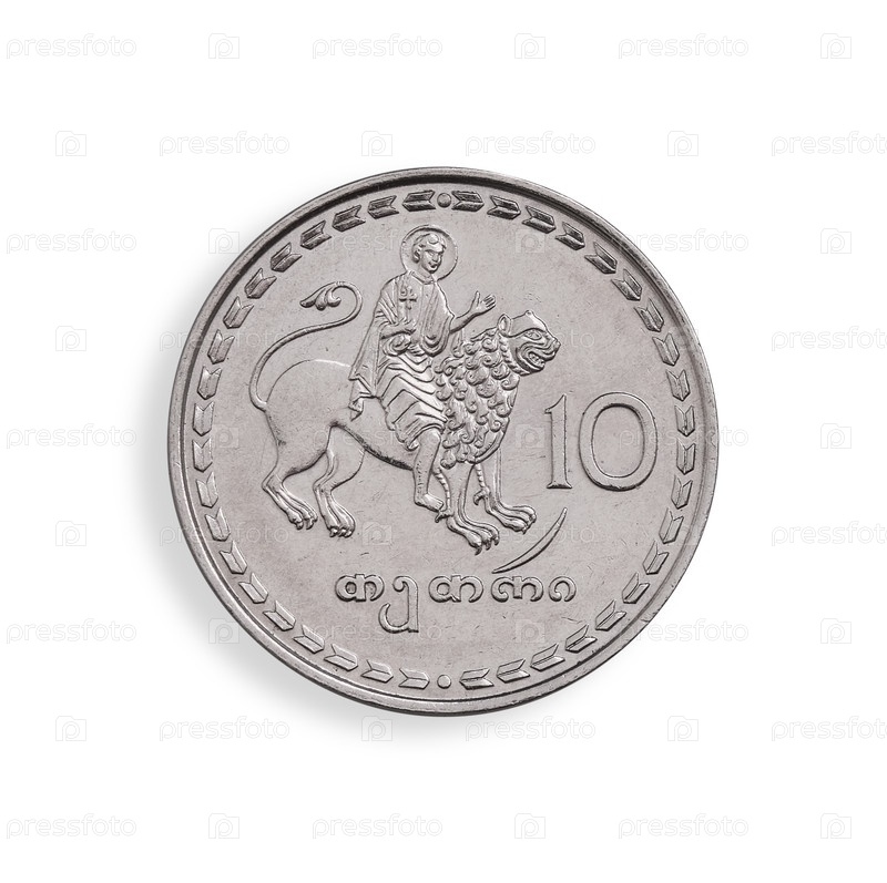 Грузинская монета 10 тетри.Грузинская надпись означает 10 тетрис на английском языке.Элемент дизайна с обрезанной дорожкой
