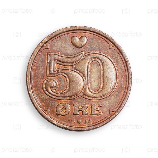 Датская монета из 50 руд.Данская надпись означает 50 руд на английском языке.Элемент дизайна с подстриженной дорожкой