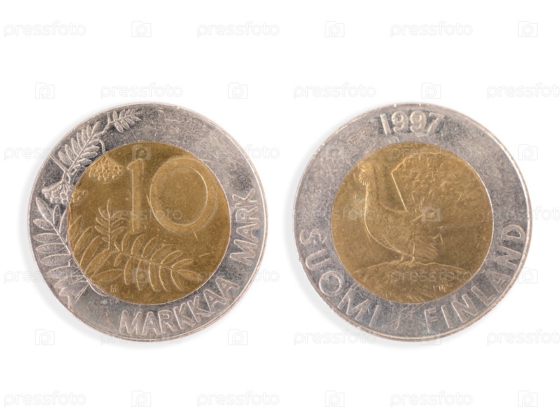 Финская монета в десять финских марок с обеих сторон изолирована на белом фоне