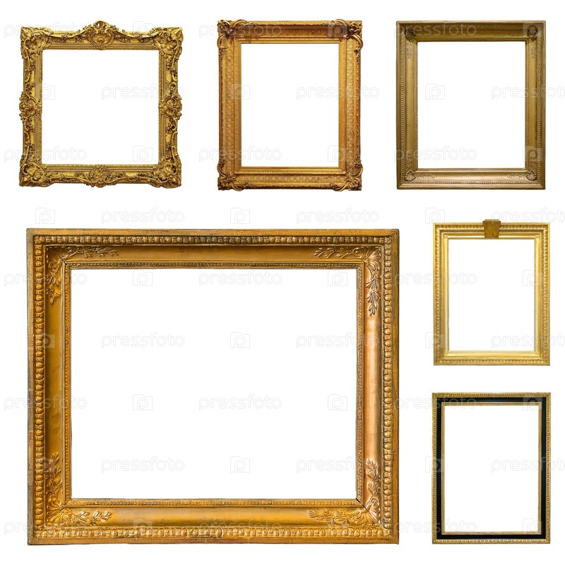 Золотые рамы для картин, зеркал или фотографий, изолированных на белом фоне (множество изображений)
