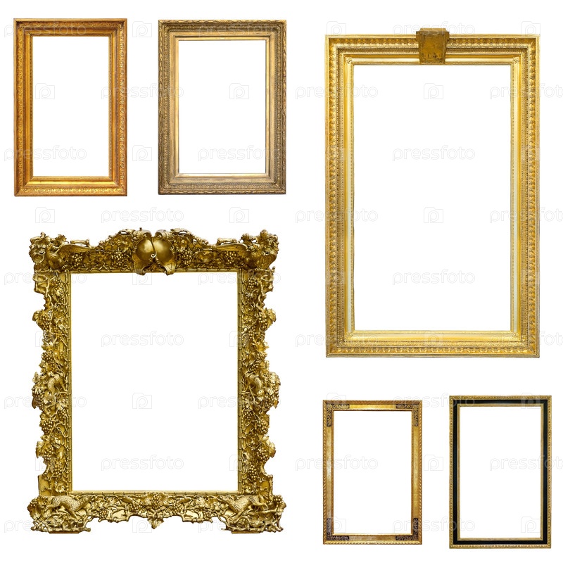 Золотые рамы для картин, зеркал или фотографий, изолированных на белом фоне (множество изображений)