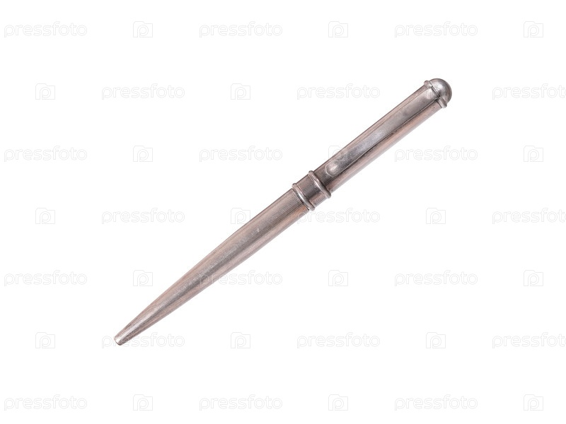 Серебряная винтажная шариковая ручка изолирована на белом фоне