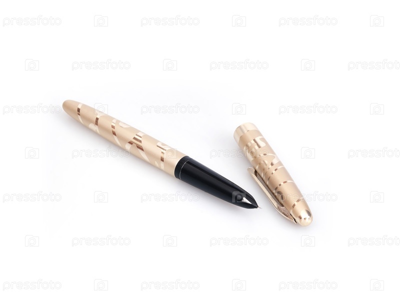 Золотая ручка фонтана изолирована на белом фоне