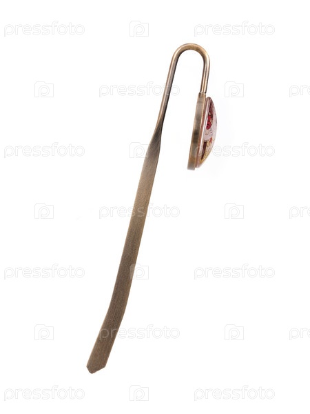 Металлический классический закладка с стеклянным медальоном изолирована на белом фоне