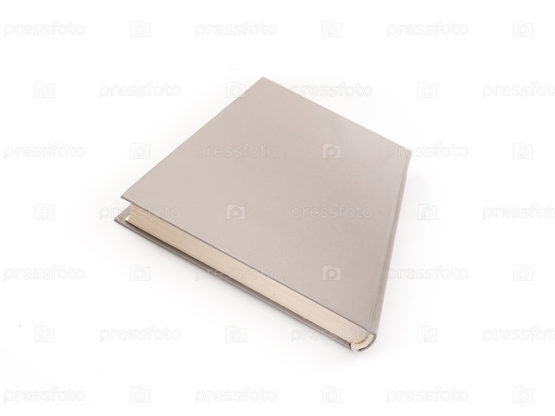 Книга в серой обложке с белыми листами, изолированными на белом фоне