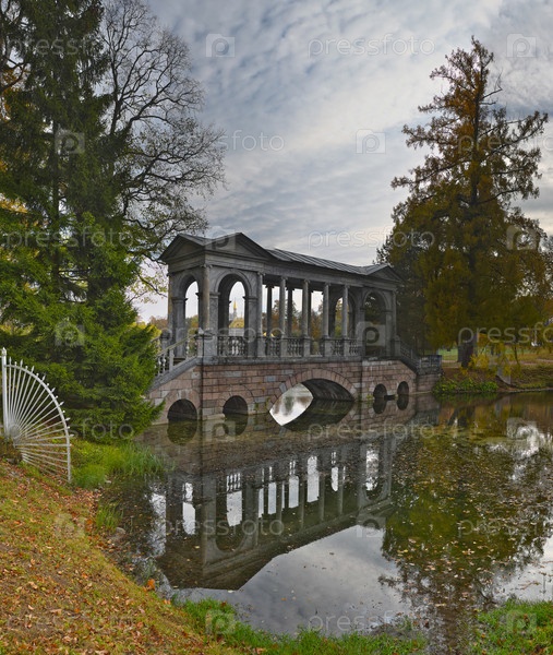 Мраморный мост осенью, дворцовый комплекс Царское Село возле Санкт-Петербурга, Россия