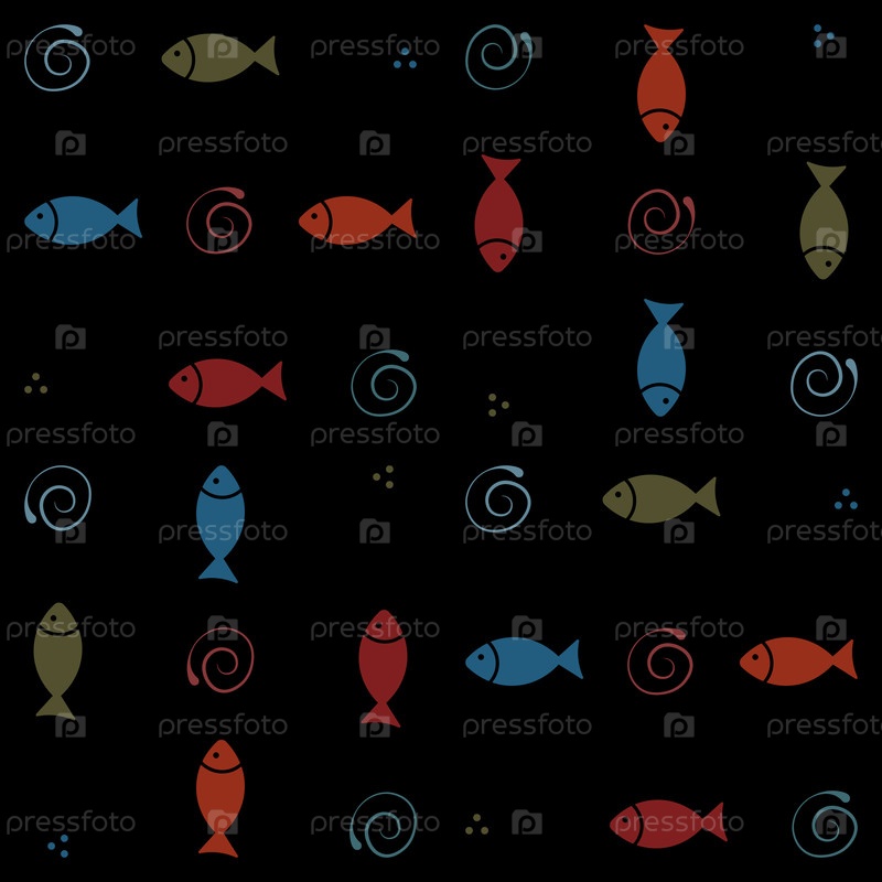 Бесшовный векторный рисунок с рыбой в море (в стиле минимализма или детского рисунка)