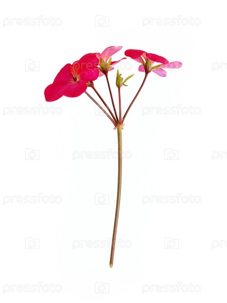 Один стебель с ярко-красными цветами пеларгониума, выделенным на белом фоне, чрезвычайно высокое разрешение