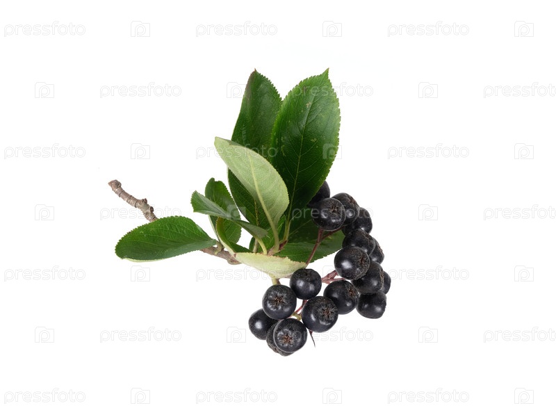 Висящая ветвь аронии с темно-синими ягодами, выделенными на белом фоне, ошейник готов