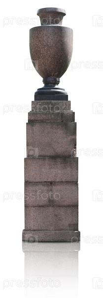 Гранитная ваза на гранитном пьедестале изолирована на белом фоне