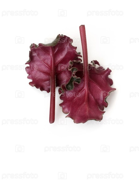 Два листья бордо-фиолетового цвета изолированы на белом фоне, чрезвычайно высокое разрешение