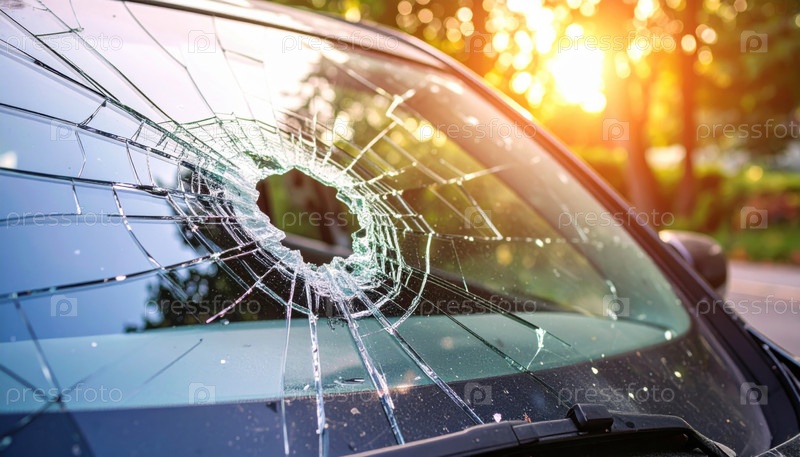 Автомобильное лобовое стекло, выделяющее несчастные случаи, вандализм или темы страхования автомобилей